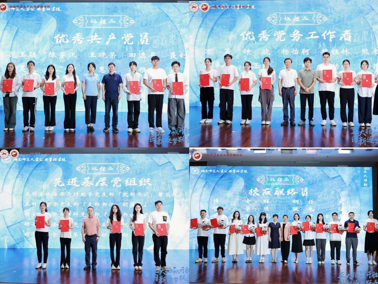 余望成宣读了国家奖学金、省优秀毕业生、校优秀毕业生、院优秀共产党员、院先进基层党组织等获奖名单与2025届校友联络员名单,领导嘉宾依次为获奖同学颁发荣誉证书,为校友联络员代表颁发校友联络证书。