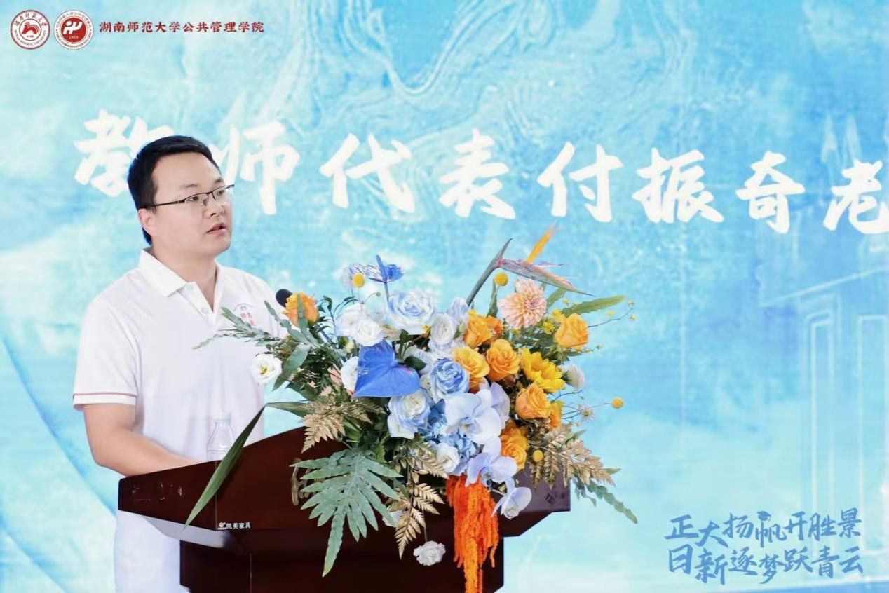 政治学与行政管理系主任付振奇作为教师代表寄语。他向毕业生们表达了美好的祝福,叮嘱同学们要秉持勤恳、善良的品格,勇担社会责任,坚守本心;要保持终身学习热忱,主动从实践与生活中汲取养分,化知识为力量;要以积极姿态将焦虑化为行动,从点滴小事躬身践行。