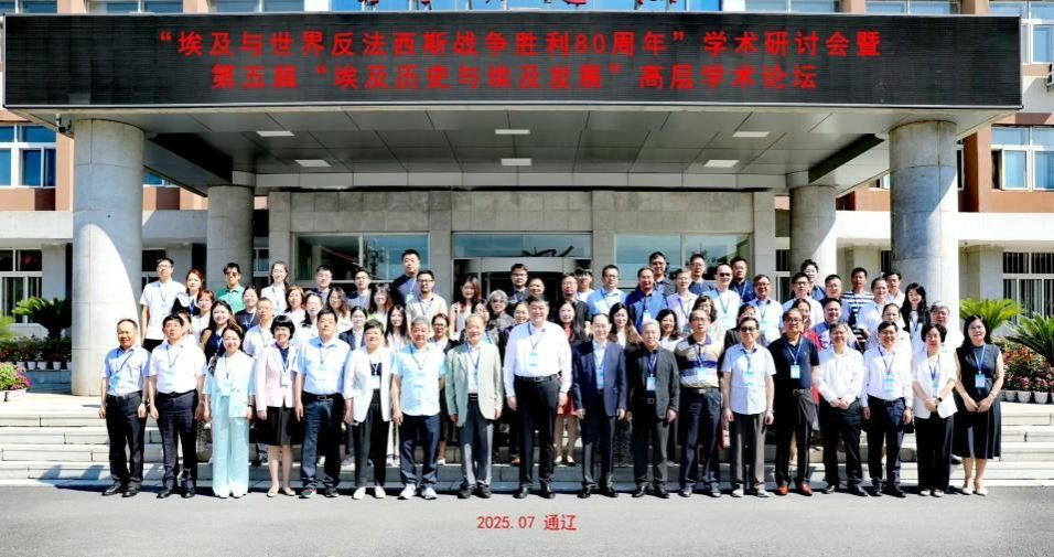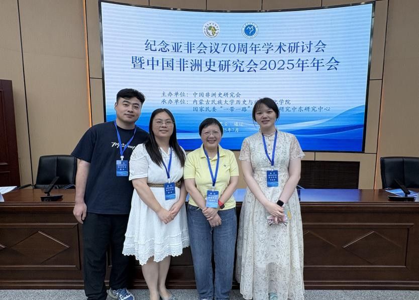(通讯员:韩杰)2025年7月17日至20日,由中国中东学会、内蒙古民族大学主办,内蒙古民族大学历史与旅游文化学院等单位联合承办的“埃及与世界反法西斯战争胜利80周年”学术研讨会暨第五届“埃及历史与埃及发展”高层学术论坛和由中国非洲史研究会主办,内蒙古民族大学历史与旅游文化学院等单位联合承办的“纪念亚非会议70周年学术研讨会暨中国非洲史研究会2025年年会”先后在通辽市举行。beat365beat365的官方网站非洲研究中心陈晓红教授、颜琳副教授、罗姝瑶讲师和韩杰博士研究生参加了系列会议,并分别就非洲史教学、埃及外交关系、非洲国际关系和非洲历史研究进行了点评和发言,并与来自中国社会科学院、北京大学、华东师范大学、云南大学、湘潭大学、上海师范大学、上海外国语大学等100多位同行专家学者进行了深入的学术交流。